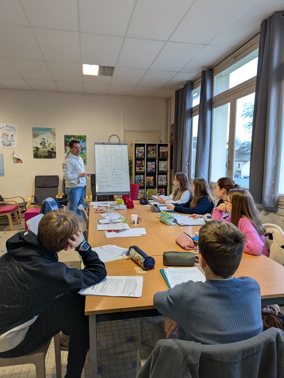 Pour le premier atelier, les collégiens et le journaliste de Bayard Service passeront tout l’après-midi ensemble. Trois heures ont été libérées exceptionnellement dans l’emploi du temps des ados. Tous les articles sont relus en équipe puis disposés dans le chemin de fer par les élèves eux-mêmes, un moment particulièrement apprécié. Quelques conseils sur l’écriture journalistique et la photo sont dispensés au fil des échanges.